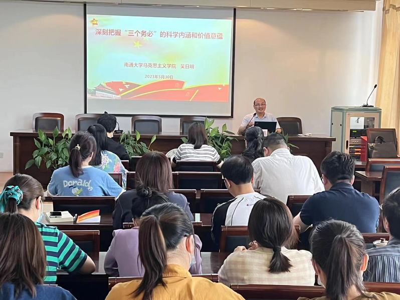 随着主题教育的深入开展,5月30日下午,马克思主义学院教授吴日明受邀为财务处全体党员上题为《深刻把握“三个务必”的科学内涵和价值意蕴》的专题党课。财务处副处长朱爱红主持活动。